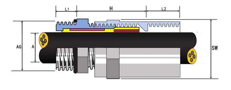 內(nèi)外螺紋的設(shè)計可以在對接設(shè)備的同時密封固定電纜,夾緊抓與密封圈凹凸相扣,夾緊范圍大,抗拉力強,抗鹽耐酸堿、酒精、油脂等一般溶劑。
