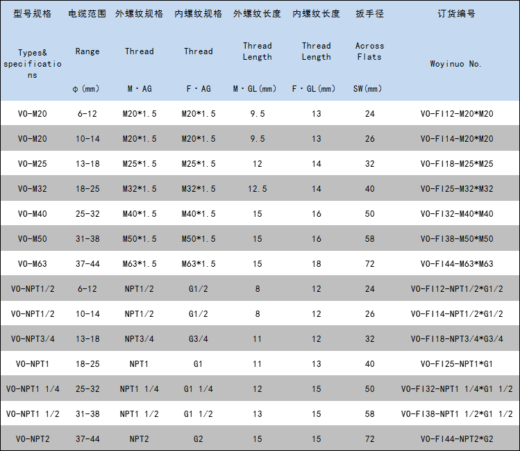產(chǎn)品名稱:VO-FI接管式格蘭頭