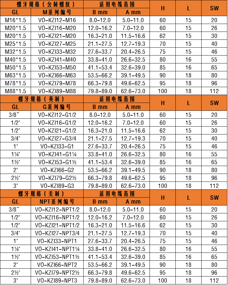 產(chǎn)品名稱:VO-KZI系列鋼絲鎧裝電纜接頭