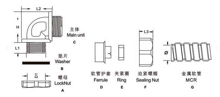 加厚型鋅合金鍍鋅或鍍硬鉻,外形美觀,結構緊密,強度高;軟管護套設計與軟管相扣接緊之設計,配合迫緊頭裝配省時便利,抗拉力特強;可防水、防塵、抗鹽、耐酸堿及一般溶劑;除以下標準規(guī)格以外,可另按需求任意變動大小及螺紋標準。