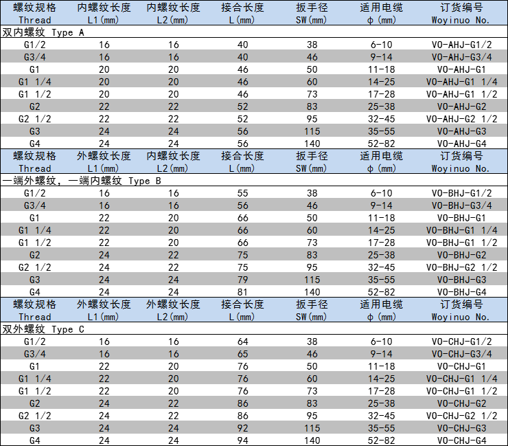 螺紋形式:雙外螺紋;雙內(nèi)螺紋,一端外螺紋,一端內(nèi)螺紋