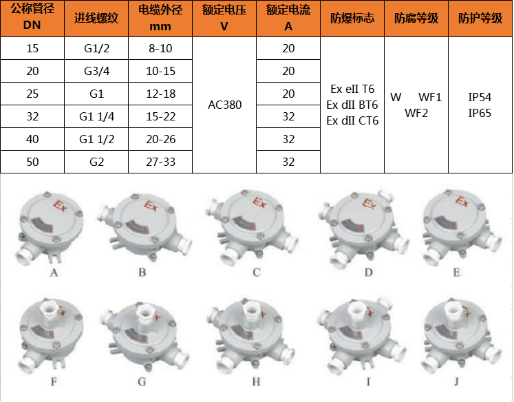 *產(chǎn)品特性:外殼采用鋁合金高壓鑄造成型,表面噴塑,外形美觀;引入口具有多種規(guī)格及方式,滿足各種現(xiàn)場布線要求;防扭轉(zhuǎn)專用接線端子,安全可靠,接線方便;引入口螺紋形式常規(guī)為管螺紋,也可定制公制螺紋和美制螺紋;鋼管或電纜布線。